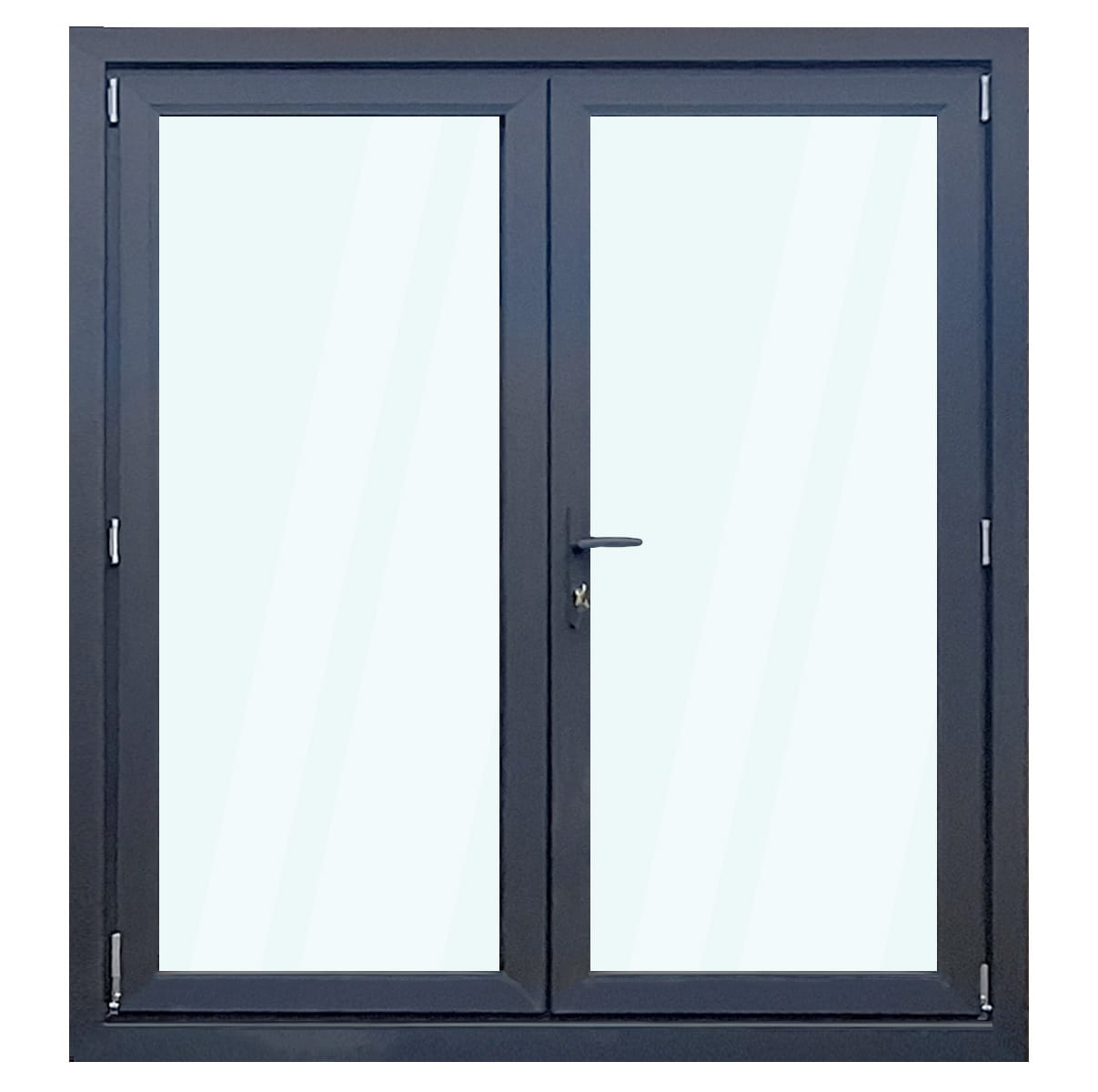 Drzwi PCV przeszkolone dwuskrzydłowe z słupkiem ruchomym na pełnej ramie "Garage Line Plus" 180x200, kolor ANTRACYT jednostronny