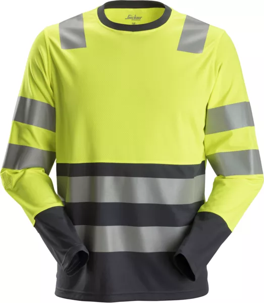 Męski T-shirt roboczy Snickers odblaskowy z długim rękawem to idealne rozwiązanie dla osób pracujących w warunkach słabego oświetlenia. Odblaskowe elementy zapewniają lepszą widoczność zarówno w dzień, jak i w nocy.