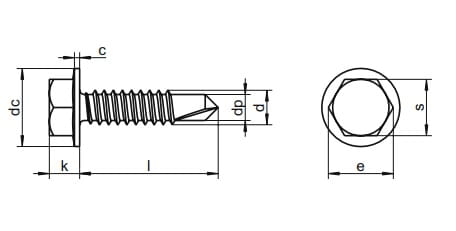 - Wkręty samowiercące DIN 7504K z łbem sześciokątnym i zintegrowaną podkładką