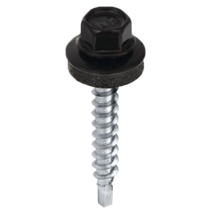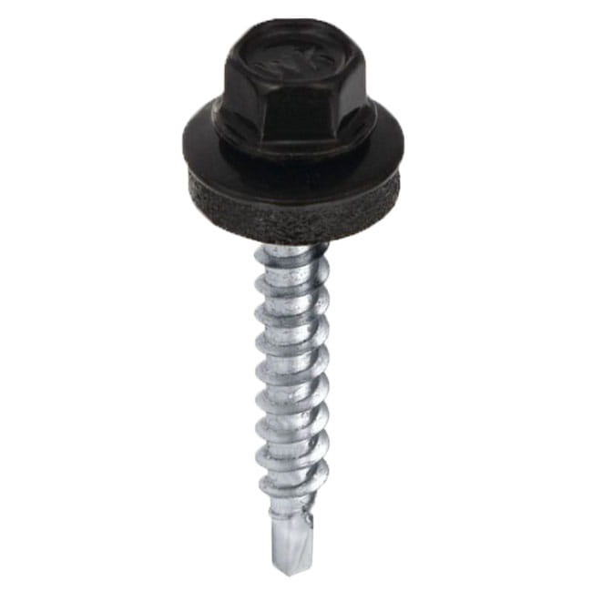 Wkręt farmerski samowiercący 4,8X35 do metalu, do blachodachówki z łbem sześciokątnym SW-8 z podkładką EPDM - Czarny - RAL 9005 - 250 szt
