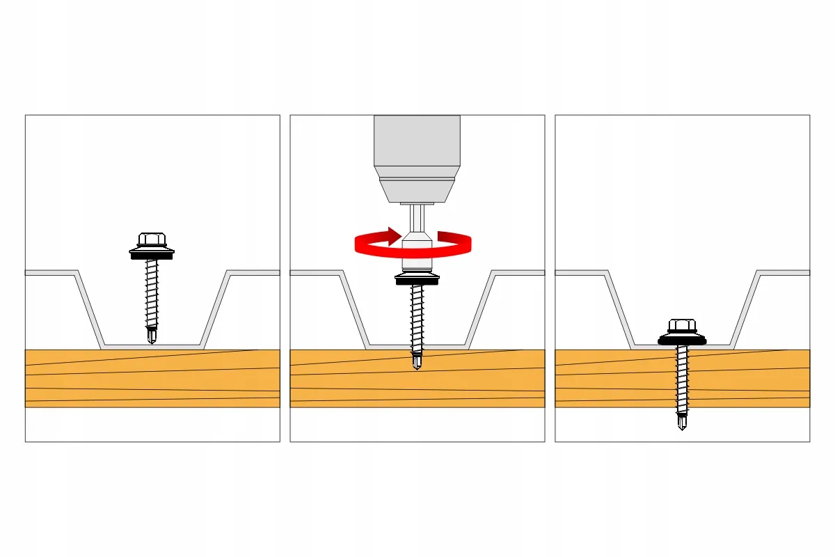 Wkręt farmerski do mocowania blach do stali, do blachodachówki . Stal węglowa utwardzana, ocynk elektrolityczny, podkładka stalowa z EPDM.