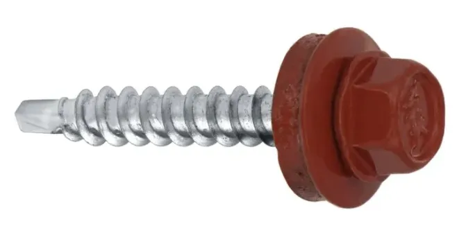 Wkręt farmerski samowiercący do metalu, do blachodachówki - z łbem sześciokątnym SW-8 4,8X35 z podkładką EPDM kolor Jasny Brąz - RAL 8004 250 szt