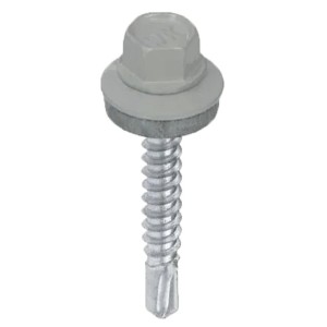 Wkręt samowiercący 4,8X20 do metalu, do blachodachówki - z łbem sześciokątnym z podkładką EPDM - Jasny szary - RAL 9006 - 250 szt.