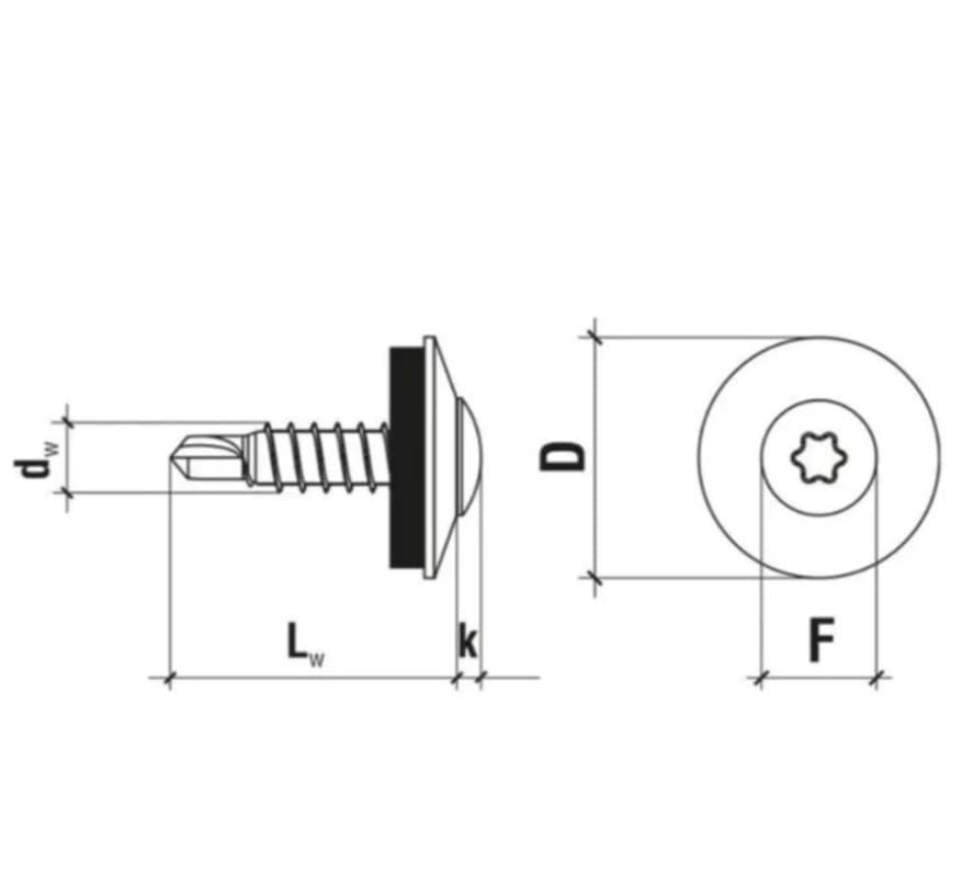 - Łeb samowiercący z gniazdem TORX-20 – estetyczny wygląd, dopasowanie do powierzchni blachy